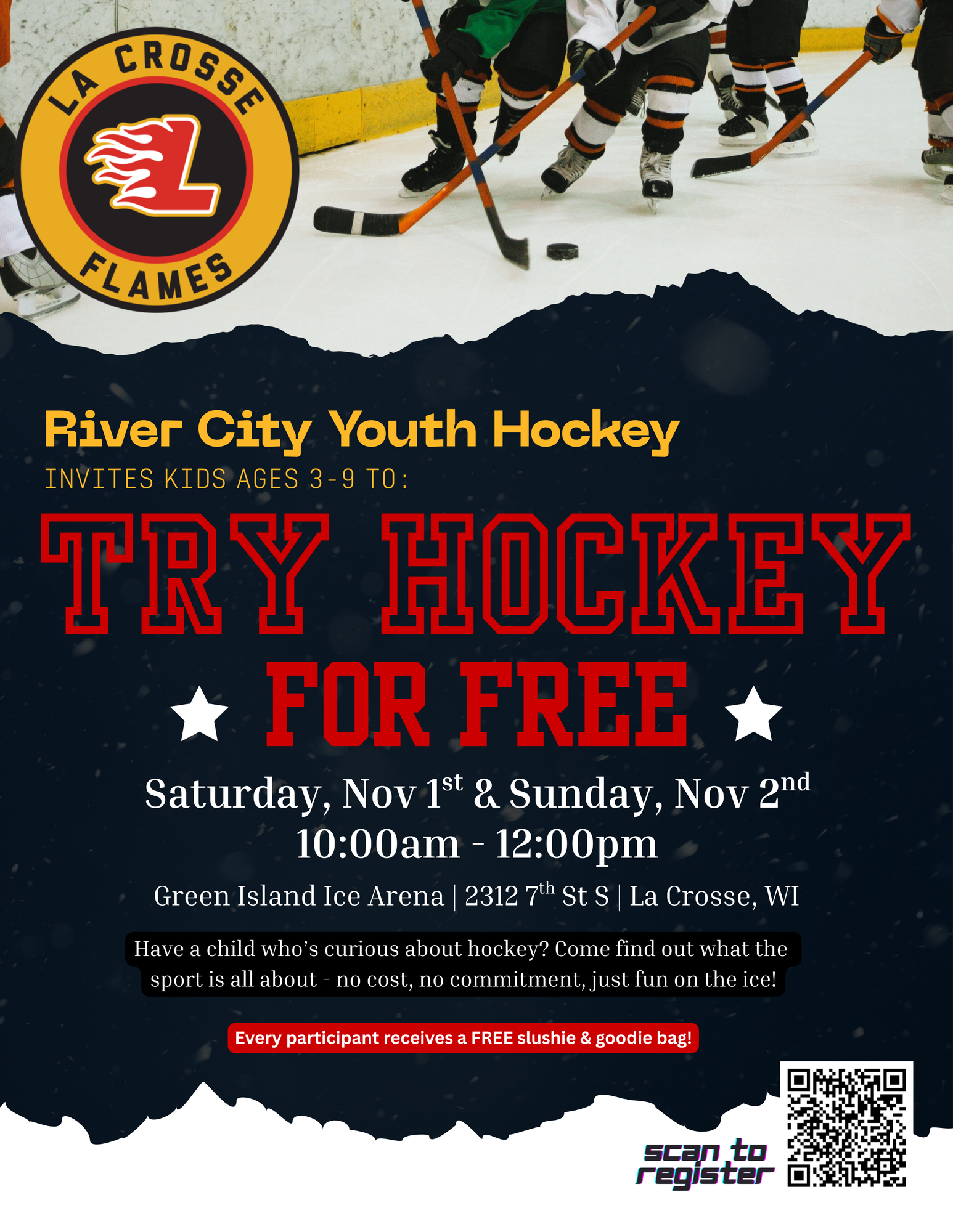 River City Youth Hockey is proud to partner with USA Hockey to host a Try Hockey for Free event. This special day is designed for kids who have never played before and want to experience the excitement of hockey in a safe and welcoming environment.